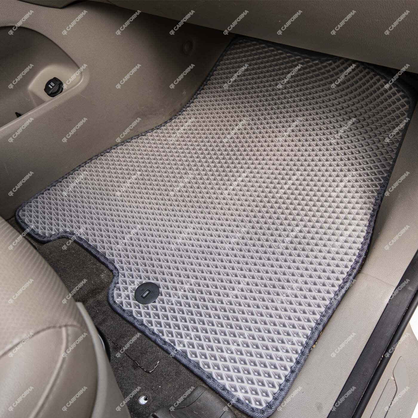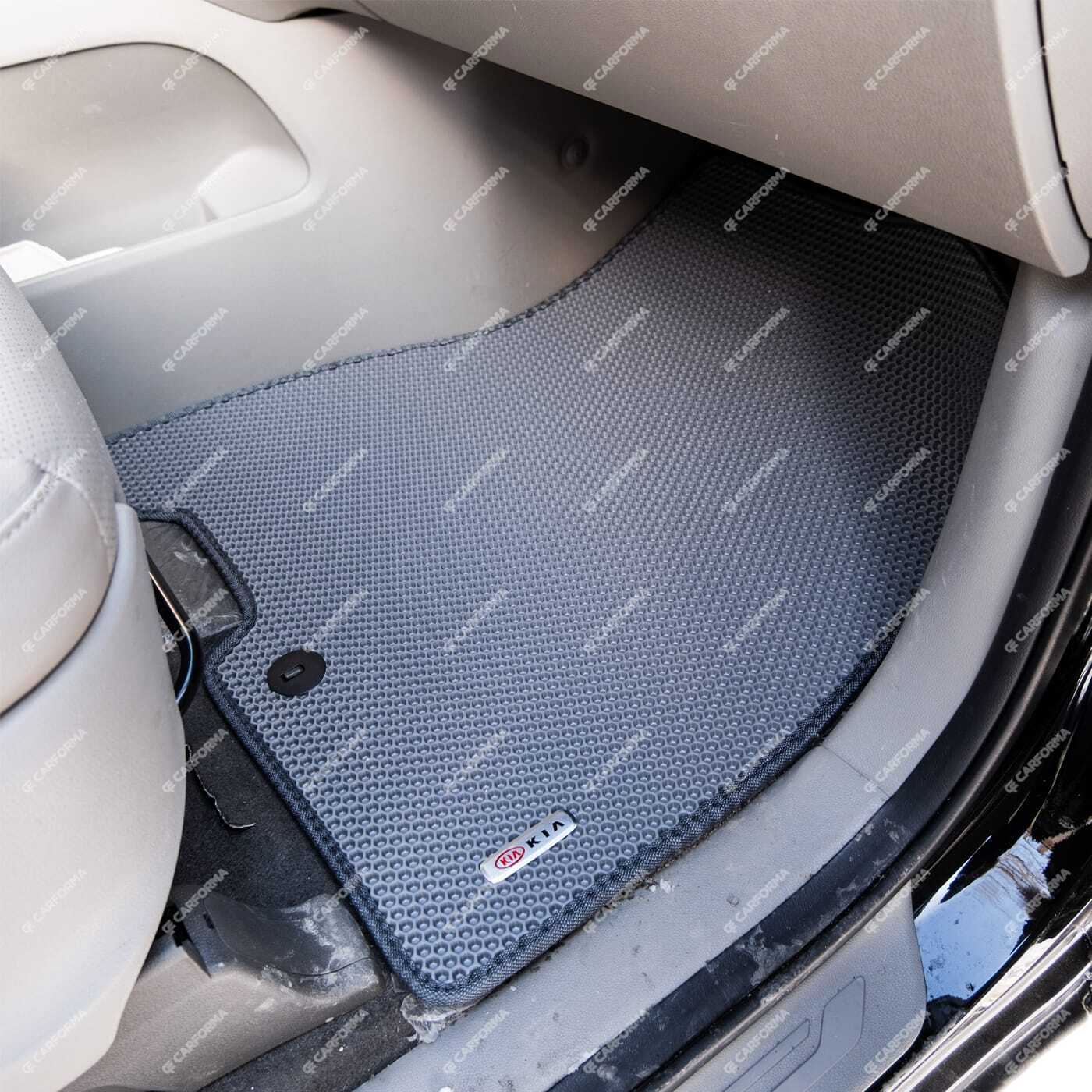 Все автомобильные коврики для KIA Carnival III 9 мест и 11 мест (2014 - 2021) от CARFORMA в Костроме (Костромская область) изготавливаются из EVA-материала по оригинальным лекалам, благодаря чему полностью повторяют форму салона, все заводские выступы и вырезы напольного покрытия автомобиля. Коврики фиксируются на полу при помощи специальных клипс и остаются на месте даже при очень быстрой езде.