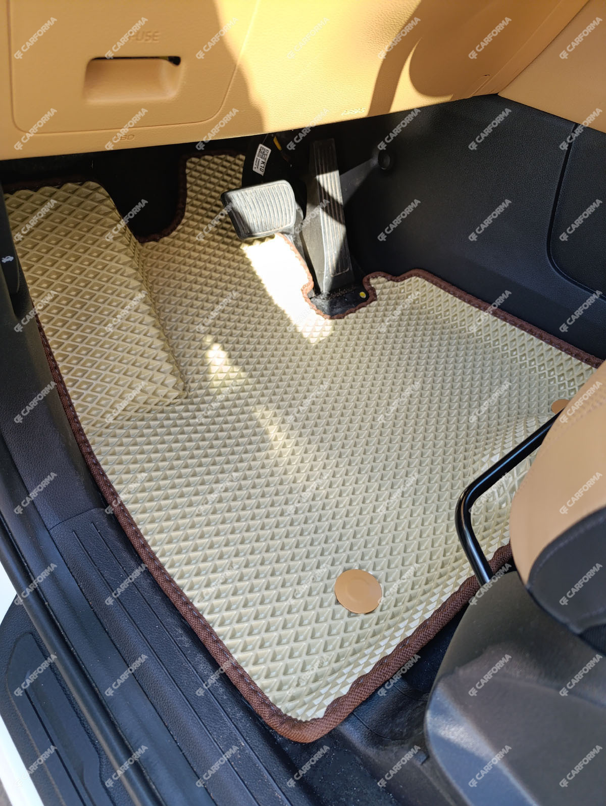 - Соответствуют оригинальным размерам и формам пола салона KIA Carnival IV 7 мест с оттоманками, что позволяет максимально эффективно использовать пространство автомобиля.